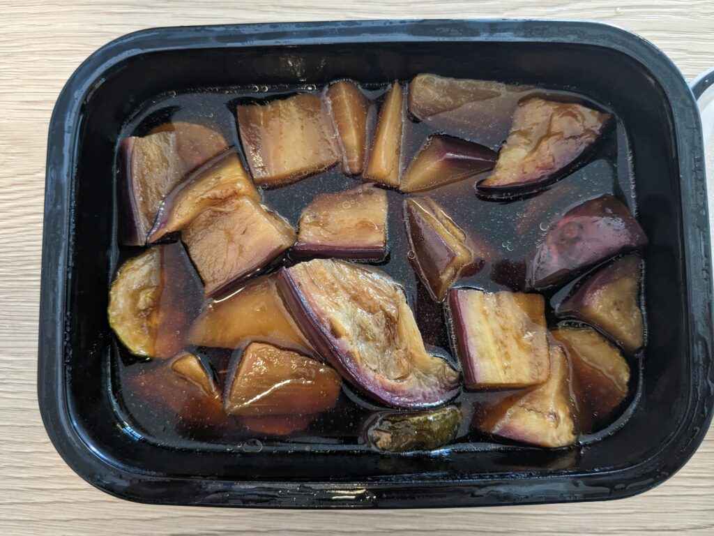 このナスとズッキーニで作った結果、ズッキーニが埋もれてほとんどナスだけになってしまった笑